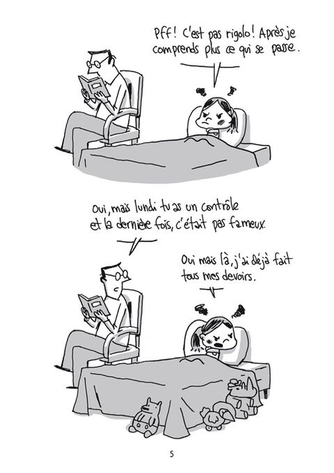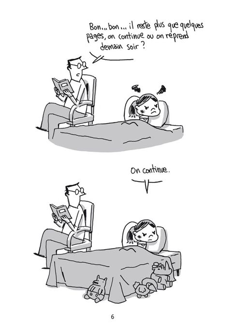 Transformer la lecture du soir en cours de grammaire ou en usine à cauchemars, rivaliser de puérilité avec ses enfants, leur apprendre les pires bêtises, gagner en trichant, et les mettre au défi de faire pire. Guy Delisle, un mauvais père ? Non, un auteur de bande dessinée qui sait puiser l'imagination là où elle se trouve, avec un sens aigu de l'observation et une bonne dose d'autodérision.