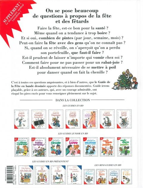 Faire la fête, tout le monde dit « Ouiiii » ! Mais pas n'importe comment ! Il s'agit de bien organiser cela pour ne pas se choper la honte devant ses invités, ses hôtes, ou pour ne pas avoir une gueule de bois mortifère le lendemain... Pour toutes ces raisons et d'autres encore, ce Guide en BD vous propose de résoudre les diverses questions qui se posent quand l'appel de la fête retentit. Des questions cruciales telles que : faire la fête ça veut dire quoi ? Tout le monde aime-t-il faire la fête ? Ou encore peut-on faire la fête n'importe où ? Dans l'esprit de la Rubrique-à-Brac de Gotlib, le cadeau idéal pour les fêtards !