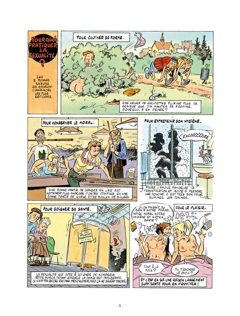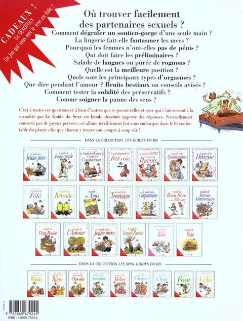 Tout, tout, tout, vous saurez tout sur le zizi... " Le Guide du Sexe " est l'ouvrage indispensable pour tout savoir sur la bagatelle. Cours d'anatomie sexuelle, explication de l'attirance physique, les zones érogènes, les préparatifs et préliminaires, les fantasmes, les dessous féminins (et comment les ôter), et plein d'autres choses encore... Que l'on soit une femme ou un homme, le sexe guide notre vie, il est le moteur de nos actes et... bien souvent... la principale de nos préoccupations ! Grâce à ce guide, et à son humour dévastateur, vous allez découvrir un maximum de choses. Dans un premier temps, vous allez vous fendre la poire parce que les conseils absurdes et osés développés dans ces pages sont loin d'être tristounets. Ensuite, s'il reste quelque tabou ou une parcelle d'inhibition chez vous ou chez votre partenaire, Le Guide du Sexe va fissa se charger de vous débarrasser de tout cela en vous démontrant que la première vertu du sexe, c'est quand même de se payer une bonne tranche de rigolade !