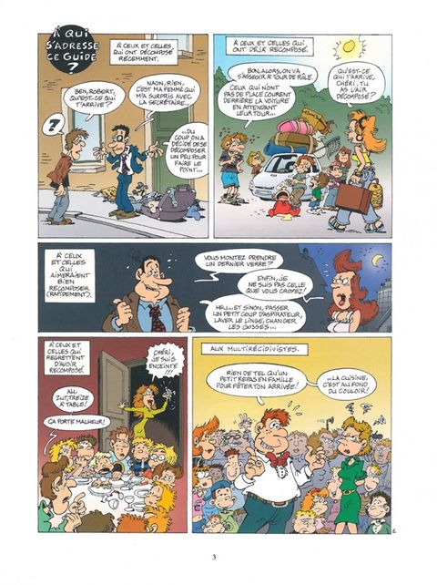 Avec l'évolution des moeurs, la famille recomposée ne deviendrait-elle pas le nouveau visage des foyers ? Quelques réponses en humour. Existe-t-il une vie après le remariage ? Peut-on continuer à rouler en coupé sportif lorsque l'on est père d'une famille recomposée, et puis d'ailleurs à partir de combien de membres une famille est-elle considéré comme nombreuse. Votre belle fille est amoureuse de votre fils, lui-même sous le charme de la cadette du mari de votre ex-épouse... Que faire ? C'est à toutes ces questions et bien d'autres que le « guide de la famille recomposée en bande dessinée » apporte des réponses inventives et vraiment novatrices. Grâce à ce magnifique album bri llamment composé par des auteurs maintes fois divorcés et remariés, dotés eux-mêmes d'une immense expérience de la recomposition, vous ne pourrez plus résister à l'envie de composer vous aussi votre nouvelle famille en suivant leurs conseils avisés.