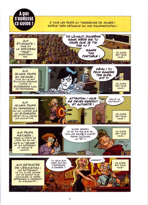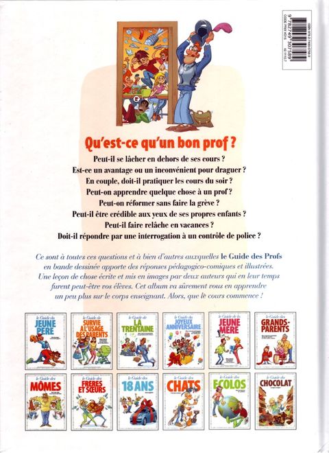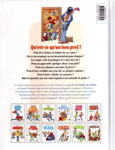 Héros pour certains, bourreau pour d'autres, une chose est sûre : prof, ce n'est pas un métier comme les autres ! Il est même coutume de dire que c'est " le plus beau métier du monde », mais est-ce vraiment le cas ? Imaginez un peu. Chaque jour, il faut faire avec les récalcitrants, les feignants, les farceurs, les trouble-fête avec leurs portables en classe ou leurs avions en papier qui sifflent à vos oreilles, et - peut-être les pires des fléaux - les parents d'élèves ! Ce qui était une belle vocation au départ peut alors vite se transformer en un véritable calvaire.Par chance, les Guides en BD sont là ! Grâce à Jack Domon et Ohazar, apprenez-en un peu plus sur ce difficile métier et découvrez les 10 commandements qui vont vous permettre d'avancer sereinement sur la voie de l'enseignant idéal.