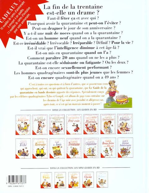 Quatrième de couverture La fin de la trentaine est-elle un drame ? Faut-il fêter ça et avec qui ? Pourquoi avoir la quarantaine et peut-on l'éviter ? Peut-on draguer le jour de son anniversaire ? Y a-t-il une nuit de noces quand on a la quarantaine ? Est-on un homme neuf quand on a la quarantaine ? Est-ce irrémédiable ? Irrévocable ? Irréparable ? Définif ? Pour la vie ? Est-il vrai que l'intelligence diminue à cet âge-là ? Est-on mis en quarantaine quand on l'a ? Comment paraître 20 ans quand on ne les a plus ? La quarantaine est-elle séduisante ou fatigante ? Ou les deux ? Est-on encore sexuellement performant ? Les hommes quadragénaires sont-ils plus jeunes que les femmes ? Est-on encore quadragénaires quand on a 49 ans ?