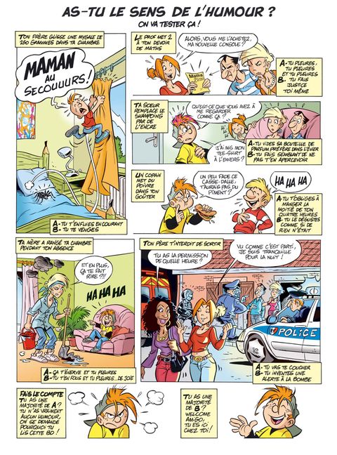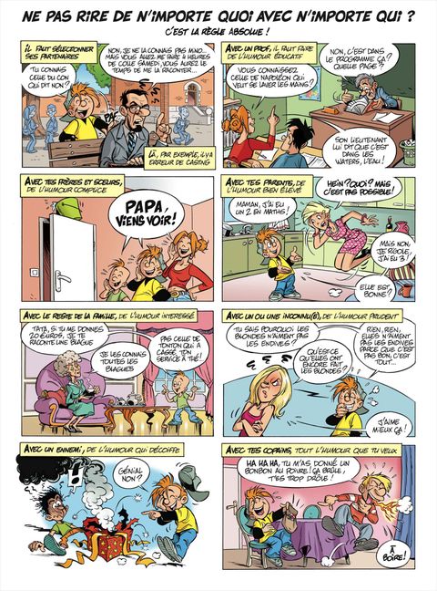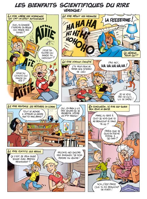 Et ça n'est pas la seule vertu du rire ! Il permet aussi de se faire des copains, de prendre les tracas avec humour, de draguer en toute légèreté... Et puis imaginez, si vous arrivez à retenir des dizaines d'histoires drôles et devinettes... Alzheimer ne passera pas par vous ! Toujours avec Mino et Ninou, ce 15e tome des Guides Junior vous propose de découvrir l'univers de la rigolade ! Dans des gags en BD, découvrez des astuces pour la provoquer à coup sûr, et des tas d'infos amusantes et intéressantes sur ce phénomène qu'on dit le propre de l'Homme !