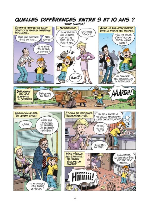 Tout change à 10 ans ! Suivant le point de vue selon lequel on se place, la différence peut être minime. ou colossale ! On devient grand et on a de nouvelles responsabilités, d'accord, mais n'oublions pas l'essentiel, on reste encore un enfant. Du coup, on continue de faire des bêtises, on mange des bonbons en cachette et on n'aime toujours pas la soupe. Dans ce nouveau guide spécialement conçu pour les plus jeunes, retrouvez une flopée de gags en une planche désopilants sur les vicissitudes de la vie à 10 ans. Avec ça, peut-être que les enfants seront enfin un peu plus pris au sérieux !