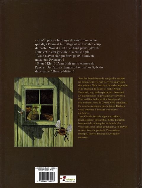 Sous les frondaisons de son jardin modèle, un vieil homme cultive l'art de vivre au rythme des saisons. Avec sa barbe argentée, son chapeau de paille et ses mains calleuses, il a tout du misanthrope rural. Un homme sans histoires. Mais l'intrusion d'une jeune étudiante trop curieuse ravive le passé récent du jardinier. Car le bonhomme n'est pas banal. Il s'agit du fameux Arnold Francart, ce grand explorateur dont les expéditions sur la banquise ont fait la une des médias. Mais pourquoi Francart a-t-il abandonné soudainement sa prestigieuse carrière scientifique ? Cette décision est-elle liée à la disparition tragique de son assistant dans le Grand Nord canadien ? Ce sont les réponses à ces questions que la jeune Barbara est venue chercher à l'ombre des arbres en fleurs...