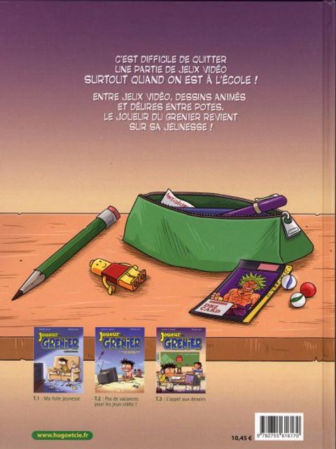 Jamais deux sans trois ! Revoilà le Joueur du Grenier dans ses aventures BD. Et cette fois c'est l'école qui est en ligne de mire... Que se passe t il en classe lorsqu'on est fan de jeux vidéo. Toujours accompagnés de ses inénarables copains, Sébastien, Realmyope, Usul et les autres... le JDG est confronté à l'univers hostile de la cour de récré et de la classe. 48 pages de gags désopilants qui vont ravir les fans (plus d'un million et demi de connexions sur Youtube) du JDG.