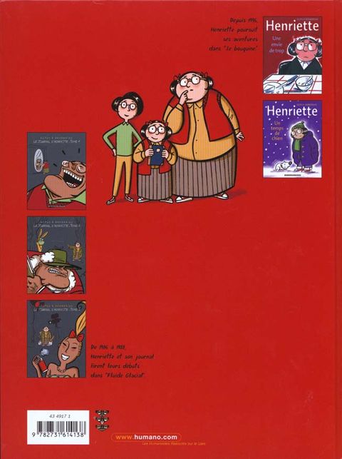Henriette est complexée par son physique (elle se trouve petite, grosse et laide). Cette adolescente rêveuse, doucement mythomane, a cependant un ami fidèle, son cher journal intime, où elle décrit avec intelligence et ironie le monde qui l'entoure. C'est toute la pertinence de messieurs Dupuy et Berberian qui se dévoile au fil de ces albums qui reprennent en version couleur les épisodes parus dans "Fluide Glacial" entre 1986 et 1988.