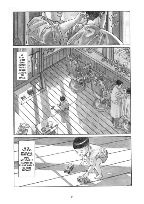 De retour dans sa ville natale pour les obsèques de son père, Yoichi se remémore son enfance. Dans ce récit intimiste, Taniguchi nous restitue toute la profondeur des sentiments et des émotions d'un homme qui plonge dans ses souvenirs. C'est avec beaucoup de finesse et de pudeur que l'auteur de Quartier lointain nous convie à cette magnifique introspection.