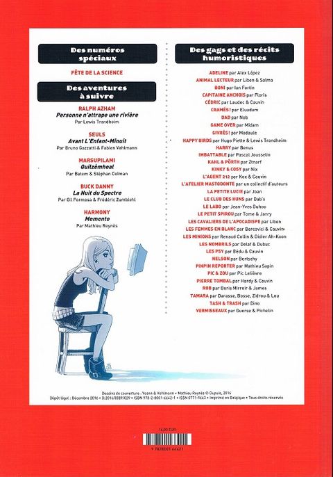 Un recueil de SPIROU, c'est 9 journaux de Spirou reliés dans une couverture cartonnée, soit plus de 500 pages de BD, de gags... Ce tome reprend les numéros parus du 23 septembre 2015 au 25 novembre 2015.