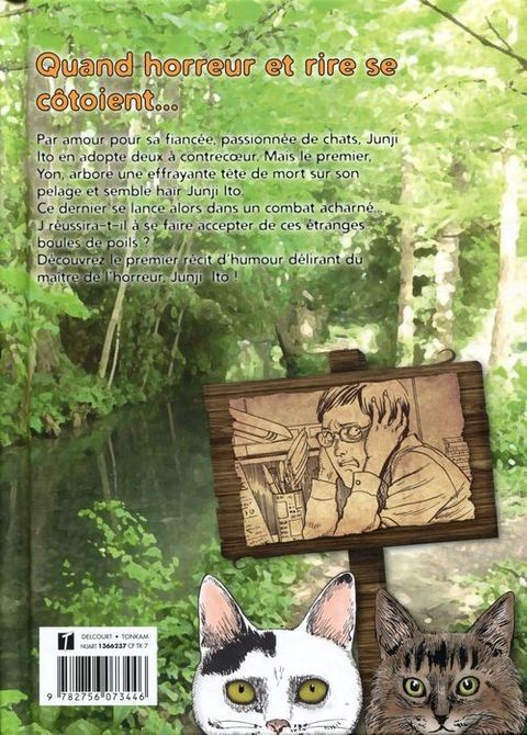 Histoire autobiographique de Junji Ito, l'auteur de Spirale et Tomié. Ce manga raconte l'histoire vraie mais exagérée de Yon et Mu les deux chats de Junji Ito. Yon, par exemple, est né avec une tête de mort sur le dos. Un jour, le chat, comprenant que cela effraie les gens, se met à redoubler de fourberie pour leur faire peur ! Sachant que sa cible favorite est. Junji Ito lui-même.