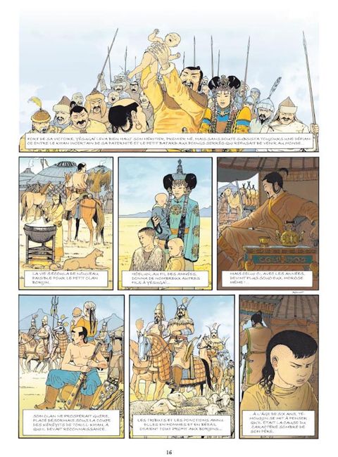 En Mongolie au 13ème siècle un chef de clan légendaire va conquérir un immense empire. Cette BD retrace le parcours de cet intraitable guerrier.