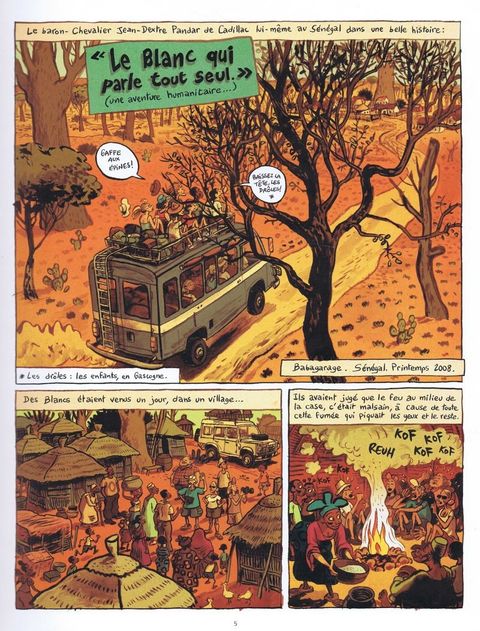 Babagarage, Sénégal, printemps 2008. Le baron accompagne une association humanitaire qui vient poser trois kilomètres de canalisation pour relier le village au château d'eau de Barbarage. Le chef du village les accueille à sa manière : « Les Blancs il viennent toujours. Depuis longtemps. Comme les sauterelles. Ils font des choses parce que chez eux ils s'ennuient. Parfois des choses bien. Parfois mauvaises. Vous, vous venez construire l'eau chez nous, c'est bien. Comme ça les jeunes ils resteront ici plutôt que d'aller chez vous où ils sont maltraités. » Le travail commence, dans la bonne humeur, même s'il faut faire avec les politiques, marabouts et autres policiers dont l'intérêt pour le projet est loin d'être humanitaire. Cette histoire se base sur un voyage fait par Nicolas Dumontheuil (accompagné par Christophe Dabitch) en 2008 à Babagarage au Sénégal.