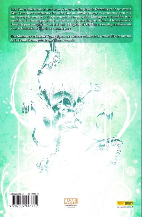 À la suite d'un tremblement de terre, la jeune Dorothée, son chat Eureka ainsi que son cousin Zeb et son cheval Jim sont emportés vers le territoire des Mangaboos. Le Magicien d'Oz doit leur venir en aide et pour cela, il lui faut... remporter un concours de magie ! Les auteurs Eric Shanower et Skottie Young nous présentent la suite de l'adaptation des romans de L. Frank Baum. Un magnifique récit acclamé par les lecteurs et la critique.