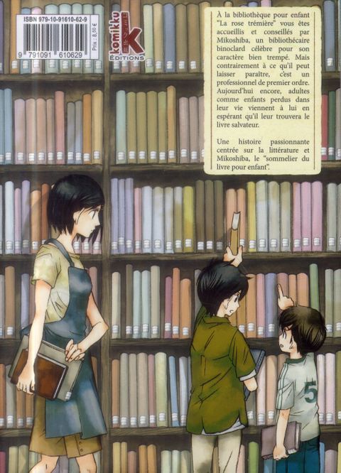 Mikoshiba est un homme simple. Mais dans la bibliothèque pour enfants où il travaille, il excelle. Ce véritable sommelier de la littérature jeunesse ne se contente pas de raconter des histoires aux enfants. Il donne un sens à leurs lectures en sélectionnant minutieusement les titres qu'il leur fera découvrir et qui pourra changer leur vie à jamais. Une magnifique ode à l'industrie du livre, un puissant hommage aux grands classiques de la littérature jeunesse du monde entier.