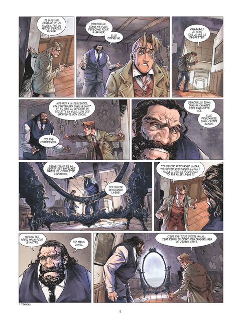 De l’autre côté de la porte, l’Enfer.Canada, 1922. Après son accident dans les eaux glacées, Daniel a eu le temps de se rétablir au Manoir Sheridan mais aussi de percer le secret de son machiavélique sauveur, Angus Mac Mahon. Cet homme mystérieux désire l’immortalité plus que tout. Et peu importe s’il doit pour cela offrir l’âme de sa nièce Edana aux forces obscures ! Sur le point d’exécuter son plan, il passe dans le monde des ténèbres afin de célébrer l’ultime cérémonie. Épris d’Edana, Daniel va devoir s’engouffrer à son tour dans cet univers cauchemardesque s’il veut la sauver… Il se lance alors sur les traces d’Angus, en compagnie de Mickhaï, le colosse un peu bourru qui travaillait au manoir. Mais plus il progresse dans l’autre monde plus le désespoir le gagne. Mickhaï l’avait prévenu, cet endroit se nourrit de nos peurs… Piégé, Daniel perd doucement courage, rongé par ses souvenirs les plus sombres. Parviendra-t-il à se dépasser pour retrouver à temps Edana et rompre le charme maléfique ? Baigné d’une aura ténébreuse à la Edgar Allan Poe, ou encore d’ambiances proches de certains films de Tim Burton, la fin de ce diptyque nous transporte dans une aventure fantastique. L’ensemble est magnifié par un dessin des plus inspirés !