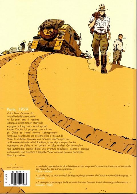 Premier album d'Arnaud Poitevin (Les Spectaculaires) retraçant les préparatifs de la future croisière Jaune d'André Citroën. Le marin du titre sera le personnage central de l'histoire chargé d'organiser la route et la logistique de cette grande aventure. Un dessin plaisant et des personnages attachants que j'ai suivi avec plaisir.