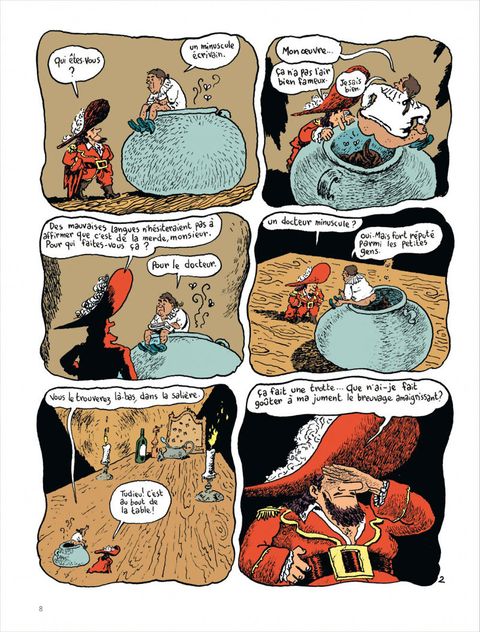 Le Minuscule Mousquetaire en intégrale ! Un peu de Rabelais, un peu de Lewis Carroll, une touche de Cyrano de Bergerac, la douceur du Sud-Ouest... et Joann Sfar qui nous invite à partager ses voyages oniriques sur fond de XVIIIe siècle d'opérette... Le Minuscule Mousquetaire, c'est l'histoire d'un homme qui passe de l'autre côté du miroir et débarque dans un monde où tout est minuscule. Imaginez un cadet de Gascogne façon Portos réduit à la taille d'une tête d'épingle. Imaginez un homme d'honneur fier et bagarreur propulsé dans un univers de femmes, où l'on se préoccupe plus de libertinage que de faits d'armes. Imaginez-le jouer les modèles dans une académie artistique, imaginez-le nu au milieu de dizaines de femmes le dessinant. Imaginez donc qu'il s'appelle le Borgne Gauchet ! Une intégrale qui réunit les trois albums du Minuscule Mousquetaire plus – attention ! – une histoire courte d'une douzaine de pages pour conclure la série ; une BD philosophico-hilarante !