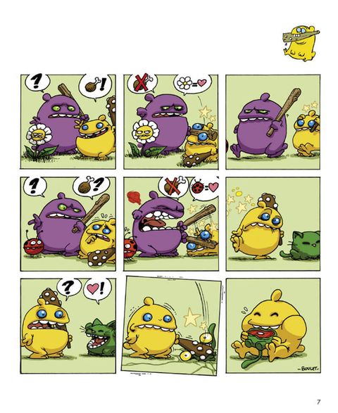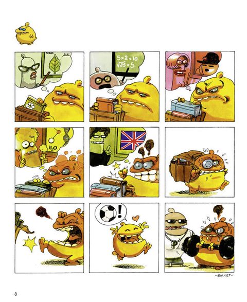 Retrouvez les aventures fantaisistes et muettes de la petite (mais costaude) boule jaune de Boulet, personnage à mi-chemin entre l'homme préhistorique et le chamalow. Il ne pense qu'à manger, il n'a pas franchement un corps de rêve, et n'a pas beaucoup d'amis. D'ailleurs ses rencontres finissent souvent sous son gourdin ou dans son assiette. Ce qui revient à peu près au même Une BD à dévorer.