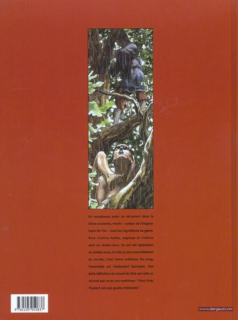 Ce somptueux polar se déroulant dans la chine ancienne, réunit - autour de l'énigmatique he pao - tous les ingrédients du genre. Sous d'autres habits, angoisse et violence sont au rendez-vous. ce qui est également au rendez-vous, et cela le plus naturellement du monde, c'est l'extra ordinaire. du coup, l'ensemble est totalement fascinant. une belle définition du travail de vink est celle-ci, donnée par un de ses confrères : " chez vink, l'instant est une goutte d'éternité ".