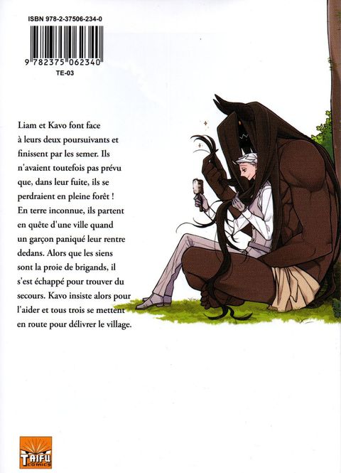 Liam et Kavo font face à leurs deux poursuivants et finissent par les semer. Ils n'avaient toutefois pas prévu que, dans leur fuite, ils se perdraient en pleine forêt ! En terre inconnue, ils partent en quête d'une ville quand un garçon paniqué leur rentre dedans. Alors que les siens sont la proie de brigands, il s'est échappé pour trouver du secours. Kavo insiste alors pour l'aider et tous trois se mettent en route pour délivrer le village.