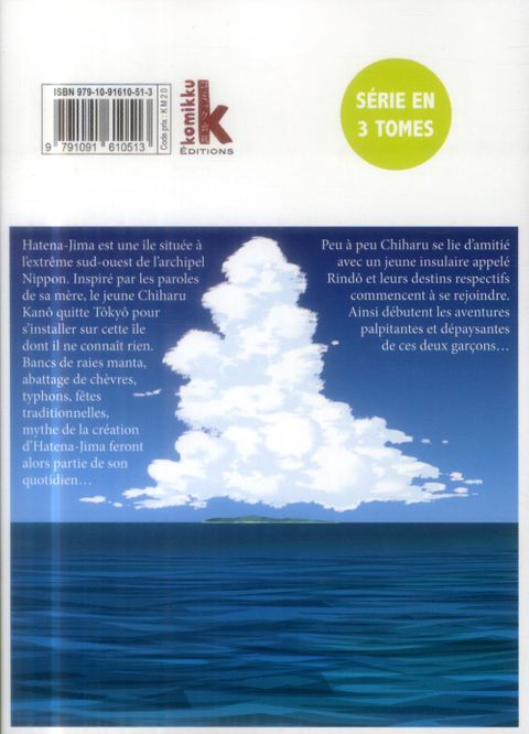 L'histoire de deux jeunes adolescents sur une île sur du sud de l'archipel japonais : Okinawa. Suivi la vie quotidienne d'un jeune lycéen, Chiharu Kano, qui se retrouve transféré dans une école sur une île éloignée. Ce dernier va alors vivre de vraies aventures. De la tranche de vie ! De l'aventure ! Et des découvertes sur les coutumes de la célèbre île d'Okinawa. Un véritable voyage initiatique dans un manga truffé d'anecdotes pour préparer votre futur voyage vers une destination de rêve ! Par le collectif UME, auteurs de GIGA TOKYO TOY BOX (nominé au Manga Taisho Award de 2013).