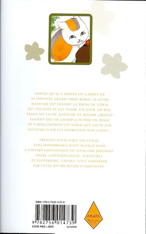Depuis qu'il a hérité du carnet de sa défunte grand-mère Reiko, le jeune Natsume est devenu la proie de Yokai qui veulent le lui voler. Un jour, e, rentrant du lycée, Natsume et Maître Griffou passent par un champ couvert de neige et y rencontrent un Yokai qui saute sur Natsume pour lui emprunter son corps... Prenant pour sujet les Yokai, Yuki Midorikawa nous plonge dans l'univers fantastique japonais. Entre contemplation, aventures et ésotérisme, laissez-vous emporter par cette oeuvre pleine d'émotions.