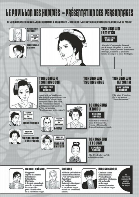Quand les femmes prennent le pouvoir ! Japon, XVIIe siècle. Une mystérieuse épidémie ayant décimé la population masculine, les rôles ont été inversés : les femmes ont pris en charge le pouvoir et le shogun est désormais une femme, avec, à sa disposition, un pavillon des hommes abritant les huit cents plus beaux hommes du pays ! Secrets d'alcôve, tensions et rebondissements nous font revisiter l'époque Edo sous un angle très original !