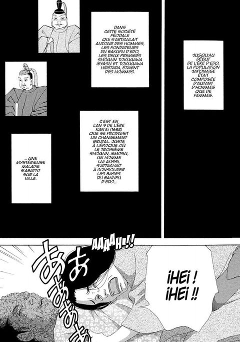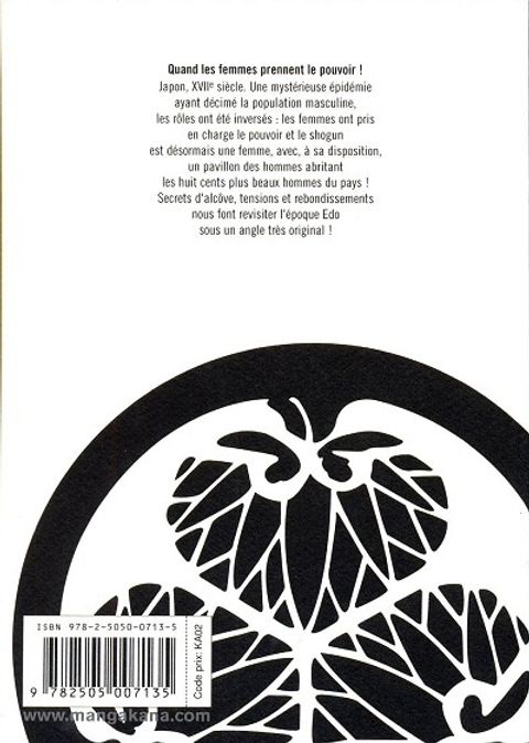 Un drame a fragilisé le Japon ! Une terrible épidémie - la variole du Tengu qui touche exclusivement les êtres masculins - tue de nombreux jeunes et moins jeunes gens, sans distinction de classe. Le shôgun Lemitsu fait partie des victimes. Six ans plus tard, le pays ignore encore le décès de Lemistu, et à l'intérieur du palais, persécutions et manipulations se nouent afin de préserver ce secret. En se rendant au palais pour présenter les hommages de l'empereur au shôgun, Arikoto - jeune et beau religieux - ne se doute pas qu'il va se retrouver prisonnier des intrigues de la cour, faisant ainsi face à l'inhumanité des pratiques et des membres de la cour.