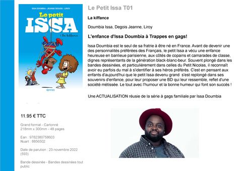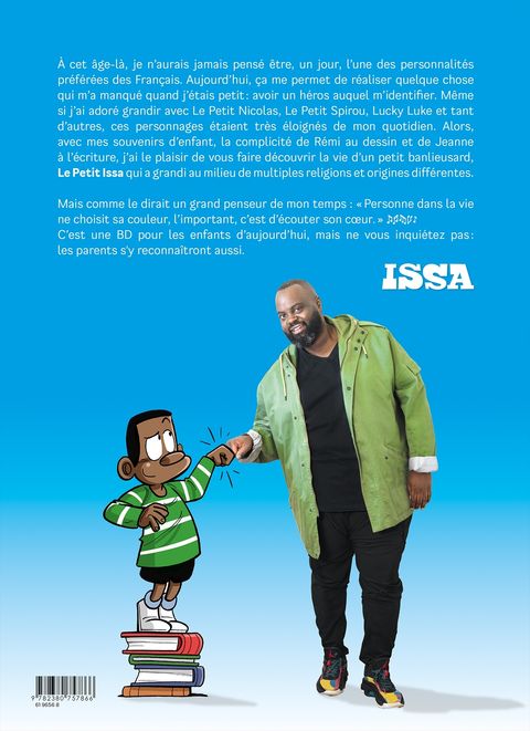 Issa Doumbia est le seul de sa fratrie à être né en France. Avant de devenir une des personnalités préférées des Français, le petit Issa a vécu une enfance heureuse en banlieue parisienne, aux côtés de copains et camarades de classe, dignes représentants de la génération black-blanc-beur. Souvent plongé dans les bandes dessinées, et particulièrement dans celles du Petit Nicolas, il reconnaît avoir eu parfois du mal à s'identifier à ses héros préférés. C'est en pensant aux enfants d'aujourd'hui que le petit Issa devenu grand s'est replongé dans ses souvenirs d'enfance, pour leur proposer une BD qui leur ressemble, reflet d'une société métissée. Le tout avec l'humour et la bonne humeur qui font son succès !
