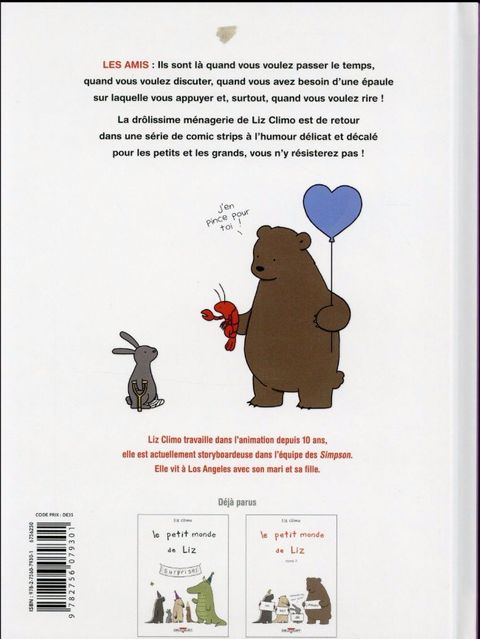 Revoici le petit monde de Liz Climo, star du webcomics américain et storyboardeuse des Simpson. Dans cet univers aussi attachant que drôle, se croisent ours et lapins, éléphants et souris, zèbres et lions, et tout un cirque d'animaux prêts à tout pour vous faire rire. Dignes héritiers du meilleur du comic strips US, les personnages de Liz Climo sont tout bonnement adorables, vous n'y résisterez pas !