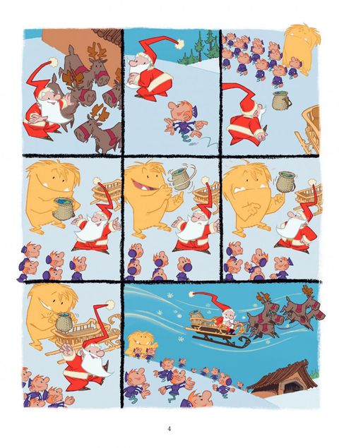 Course-poursuite au pays du Père Noël. Une petite fille débrouillarde profite du passage du Père Noël chez elle pour se cacher dans le traîneau et rentrer avec lui au pays de Noël. Là, elle découvre l'usine à jouets, l'usine à friandises et les lutins bricoleurs. Et elle décide de leur faire fabriquer ses jouets et bonbons préférés... Des jouets pas vraiment sages mais super rigolos. Pour le Père Noël, c'est la catastrophe ! Il faut refabriquer les bons jouets et ramener la petite fille chez elle au plus vite avant que ses parents ne s'inquiètent ! Encore faut-il l'attraper, bon sang de bon sang ! C'est qu'elle est pleine de ressources, la petite ! Une histoire où l'on découvre que même le Père Noël peut perdre patience ! À lire dès l'âge de trois ans.