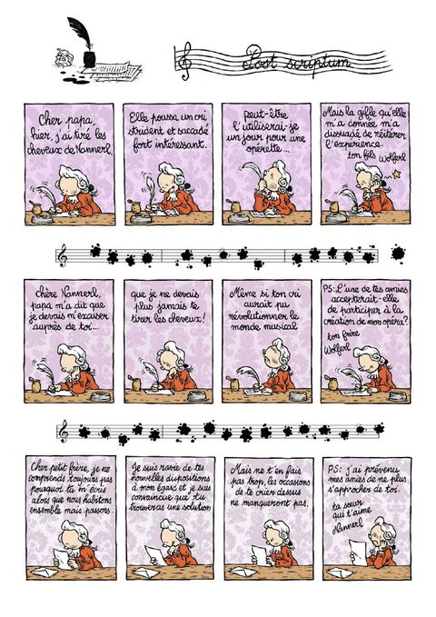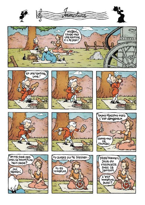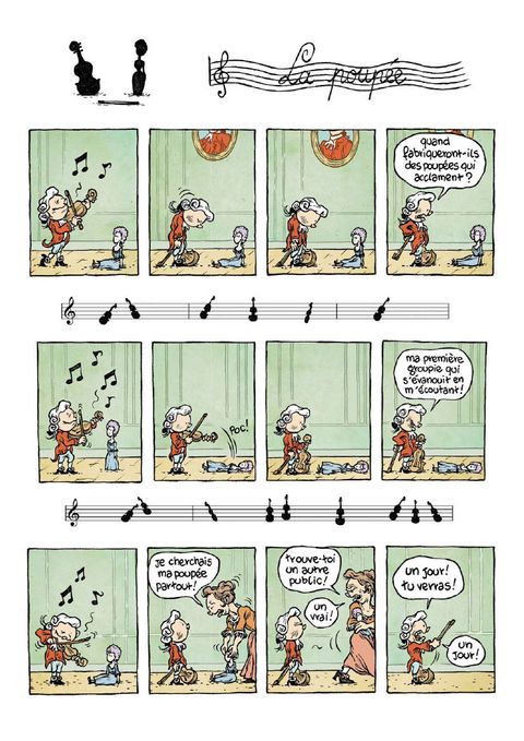 Pour l'instant connu sous le sobriquet de Wolferl, le petit Wolgang Amadeus Mozart ne vit que pour la musique. Et il sait déjà l'apprécier sous toutes ses formes, même les plus inattendues ! Le jeune virtuose cherche - et trouve ! - l'inspiration partout où elle se cache, jusque dans les cris de Nannerl, sa soeur, ou les crottes de son chien. Qu'elles proviennent des oiseaux, des grillons ou des grenouilles, toute note est bonne à prendre, car pour ce génie en herbe, tout n'est que musique ! De l'Autriche à l'Angleterre, en passant par la France et l'Italie, notre petit Wolgang, bien que promis à la postérité, n'est pas encore assez mûr pour garder ses reflexions pour lui et ce, pour notre plus grand plaisir !