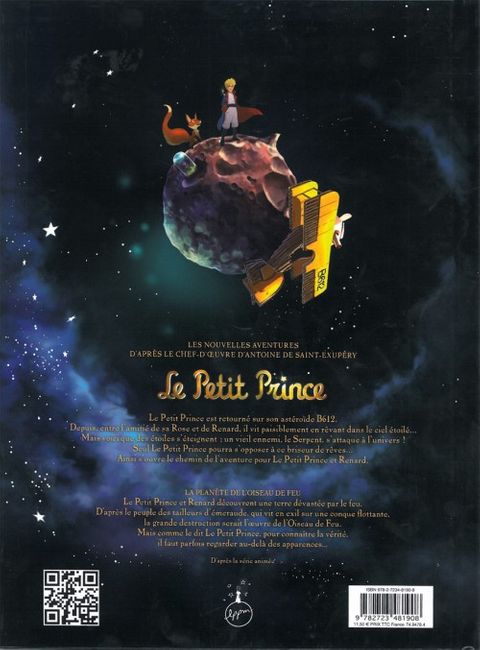 Une création originale en 24 albums ! Le Petit Prince est un chef d'½uvre de la littérature mondiale, à la fois conte poétique, philosophique et récit initiatique, il fait partie de l'imaginaire collectif. Accessible à tous, à tout âge, il porte un message d'espoir pour une humanité responsable et généreuse. En parallèle avec la série d'animation diffusée sur France 3, les éditions Glénat sont fières de publier une série d'albums dérivés de la série d'animation du Petit Prince, mais également inspiré du véritable phénomène littéraire de Saint-Exupéry vendu à plus de 134 millions d'exemplaires dans le monde et traduit en 220 langues et dialectes. La série animée sera diffusée à partir de septembre 2011 sur France 3 dans lémission Ludo. De nouvelles aventures ! L'univers est en danger : les étoiles s'éteignent les une après les autres sur le passage du Serpent. Le Petit Prince, bien décidé à empêcher le mal de régner sur la galaxie, quitte son astéroïde et sa rose pour un grand voyage. Accompagné de son fidèle ami Renard, il va découvrir de vastes mondes enchanteurs régis par des lois toujours différentes, parfois fantaisistes, utopiques ou absurdes. Ses dons extraordinaires lui permettront-ils de redonner vie et équilibre à chacune de ces planètes, et de retrouver le chemin du retour vers sa rose ? Une équipe créative et talentueuse a été mise en place pour la réalisation des albums, composée de Didier Poli, formé à « l'école Disney », comme directeur artistique et de Guillaume Dorison, scénariste. La collection comptera 24 titres correspondant aux 24 planètes visitées par Le Petit Prince. En bonus à la fin de chaque album, Le Petit Prince sera revisité par les grands noms de la BD : Moebius et Juillard pour les T1 et T2. Tome 2 - La Planète de l'oiseau de feu Quand le Petit Prince arrive sur cette planète, l'Oiseau de Feu s'acharne sur le peuple des tailleurs d'émeraude. Le Petit Prince découvre que tout vient d'une histoire de jalousie, entre les enfants du défunt roi : la princesse Feng et le prince Huang. En effet, le frère, ne supportant pas l'idée que l'oiseau de feu puisse choisir sa s½ur pour devenir la future souveraine, a volé la couronne et s'est autoproclamé roi, déclenchant les foudres de l'oiseau, garant de la légitimité du pouvoir.