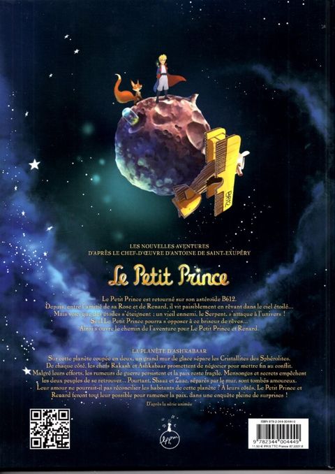 Sur cette planète coupée en deux, un grand mur de glace sépare les Cristallites des Sphérolites. De chaque côté, les chefs Rakash et Ashkabaar promettent de négocier pour mettre fin au conflit. Malgré leurs efforts, les rumeurs de guerre persistent et la paix reste fragile. Mensonges et secrets empêchent les deux peuples de se retrouver… Pourtant, Shaaz et Zaac, séparés par le mur, sont tombés amoureux. Leur amour ne pourrait-il pas réconcilier les habitants de cette planète ? À leurs côtés, le Petit Prince et Renard feront tout leur possible pour ramener la paix, dans une enquête pleine de surprises !