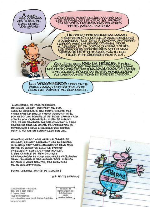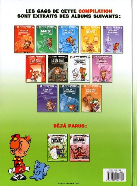 Le meilleur des gags du "Petit Spirou" mettant en scène Monsieur Mégot, le fameux prof de gym. Les gags sont complétés par un portrait du personnage, une lettre écrite par le Petit Spirou, des pages de garde amusantes autour de l'univers du personnage et une couverture inédite.