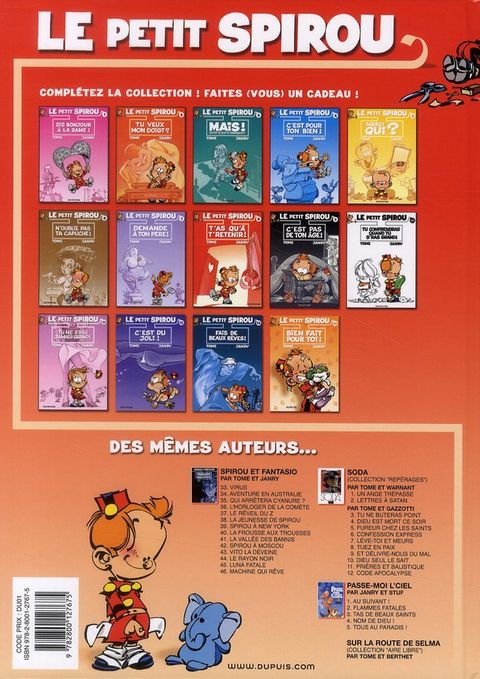 Un nouvel album hilarant signé par le duo incontournable Tome et Janry ! Ce tome regorge de gags où chacun pourra se reconnaître, explorant les rêves, les idées farfelues et les aventures parfois improbables du petit Spirou et de sa bande. Un concentré d’humour et de légèreté, porté par des (...) Voir le commentaire