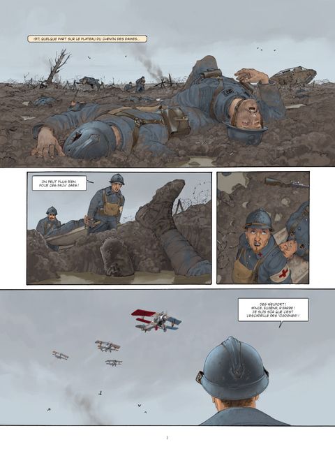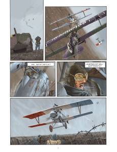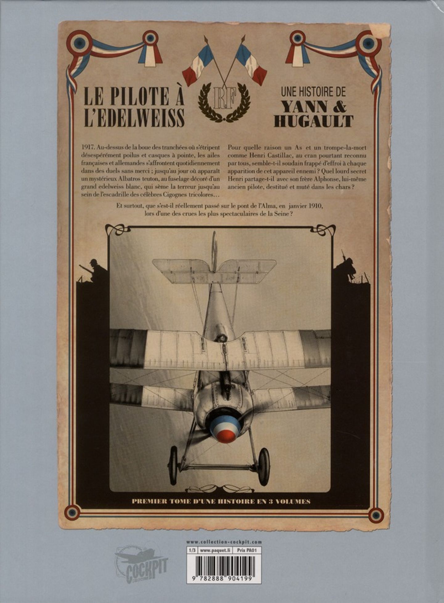 Après leur série à succès Le Grand Duc, Yann et Romain Hugault décident de s’attaquer à la Première Guerre mondiale avec Le Pilote à l’Edelweiss. Un album très attendu, par un duo devenu incontournable dans la BD. En 1917-18, les deux frères Castillac participent activement au conflit mondial ; Henri est devenu un des « as » de l’aviation française et Alphonse, ancien pilote lui aussi, a été sanctionné et muté dans les chars pour raison disciplinaire; mais tandis que ce dernier ronge son frein et rêve de voler à nouveau, son frère vit dans la terreur d’affronter un certain pilote allemand dont le Fokker est décoré d’un superbe Edelweiss. Quel terrible secret enfoui dans le passé des deux frères se cache derrière cette peur panique ?Comment la belle Valentine, l’épouse d’Alphonse, va-t-elle réagir face à l’évolution des rapports de plus en plus ambigus entre les jumeaux ?...Et surtout, que signifie ce mystérieux Edelweiss ? Les personnages : · Henri et Alphonse Castillac : jumeaux, à la fois complices et rivaux en amour ; tous deux passionnés d’aviation, ils se sont engagés dans l’escadrille des "cigognes" et sont devenus des "As" (tout comme les personnages réels dont s'est inspiré Yann pour les créer : les frères jumeaux Navarre). · Alphonse : Timide et réservé. Amoureux fou de Valentine. C’est l’introverti type. Suite à un tragique évènement et à une "dette" de jeunesse envers son frère Henri, Alphonse est chassé des "Cigognes" et se retrouve versé dans les chars où il commande un tank géant "Schneider", puis un autre mastodonte : le "Saint-Chamond". Il ronge son frein, englué dans la boue du front, guettant avec tristesse et jalousie le passage de son ancienne escadrille au-dessus des tranchées… · Henri : Pilote de Nieuport VII et de Spad XIII; célibataire endurci et séducteur invétéré. Casse-cou et noceur. Bref, extraverti. Il est un des "As" de l’escadrille des "Cigognes", ne redoutant aucun adversaire… jusqu’à l’apparition d’un mystérieux pilote d’Albatros dont l’appareil décoré d’un Edelweiss semble le terroriser. · Valentine Touchet : L’épouse alsacienne d’Alphonse; pose comme modèle patriotique pour des cartes postales sensées soutenir et exalter le moral du poilu. Elle est attirée par le charme et la prestance d’Henri mais fidèle à Alphonse, qui a sauvé héroïquement la vie de son petit frère, François. · Walburga : Femme mystérieuse, originaire de Bohême-Moravie ; pose pour le père des deux jumeaux.