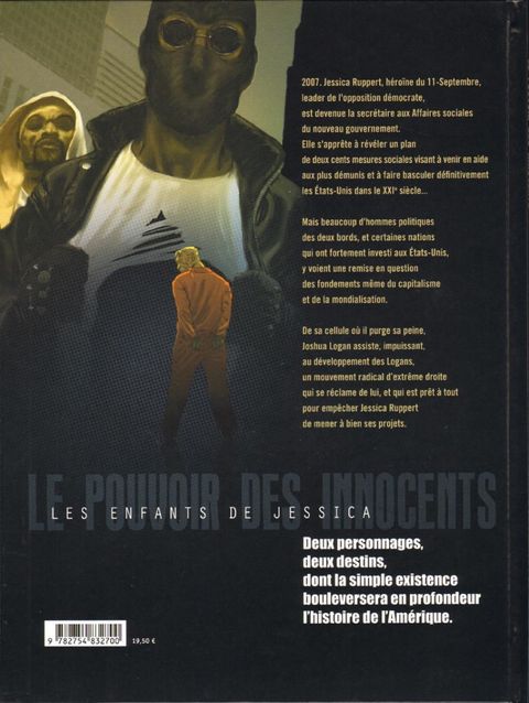 À travers les personnages emblématiques du Pouvoir des innocents (Jessica Ruppert, Joshua Logan)..., Luc Brunschwig et Laurent Hirn posent la question de savoir si les États-Unis (et le monde) sont capables de sortir de la logique de l'économie de marché et de la mondialisation, pour créer une société plus juste... et à quel prix ? Les enfants de Jessica est le dernier cycle de la série culte de Brunschwig et Hirn.