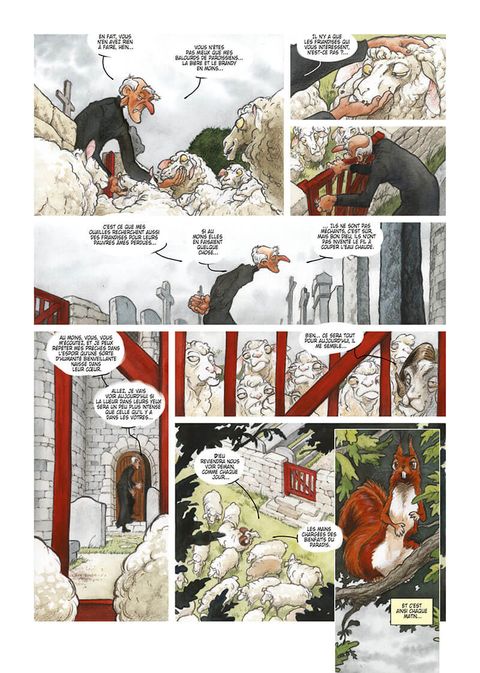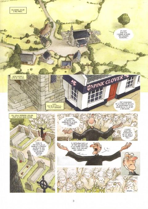 Depuis toujours le curé de Kilkenny vient réviser son prêche devant les moutons qui l'écoutent pieusement, dans le pré derrière l'église. Un matin, il ne vient pas, ni les suivants. Un écureuil et un vieil hibou vont mener l'enquête sur cette disparition, pendant que les ovins se déchirent pour succéder à celui qu'ils prennent pour Dieu et les humains se divisent pour le pub accolé à l'église !