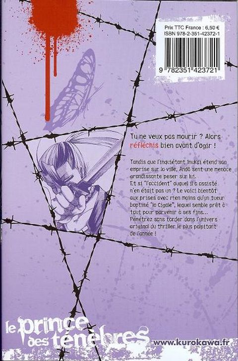 Alors que l'inquiétant Inukaï étend son emprise sur la ville de Nékota, le jeune Andô sent une menace grandissante peser sur lui. Et si l'accident auquel il assiste n'en était pas un ? Le voici bientôt aux prises avec rien moins qu'un tueur baptisé «la cigale», lequel semble bien prêt d'arriver à ses fins. Dans ce deuxième volume du Prince des Ténèbres, le mystère Inukaï semble s'épaissir à mesure que l'on en apprend davantage sur sa terrible organisation. Et ce n'est que le début !