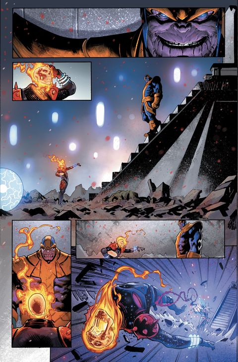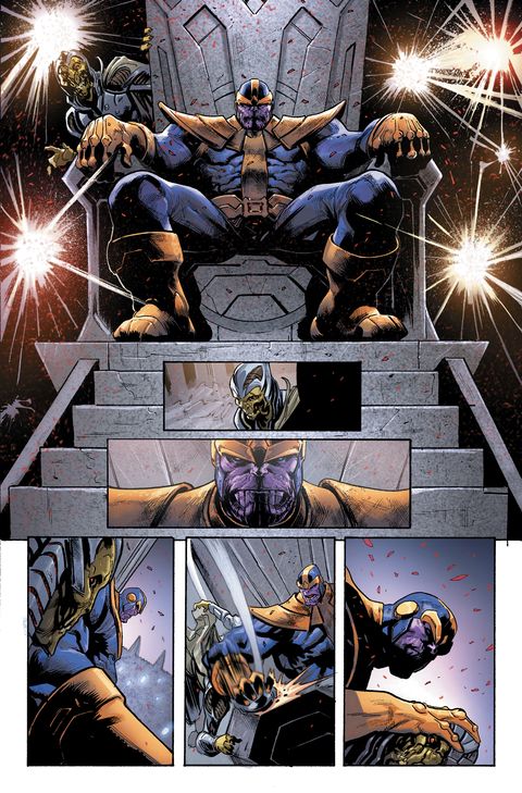 Le Titan fou seul face à lui-même. Le combat ultime de l'univers qui ne laissera que la mort seule. Excellent run autant par son scénario que son dessin ou ses dialogues. Un huit clos ultime qui se terminera dans un néant ultime où Thanos gagne.