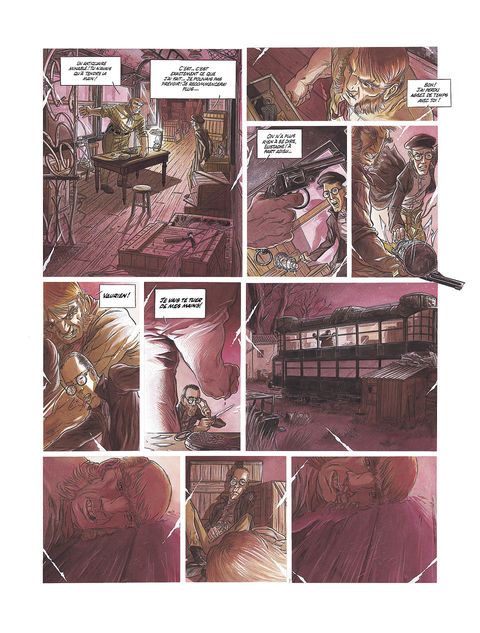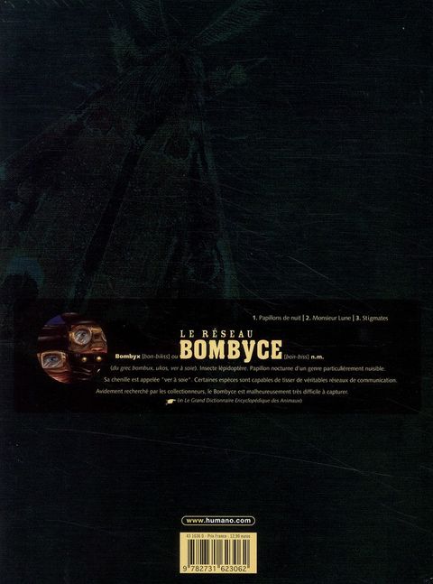 Bombyx: insecte lépidoptère. Papillon nocturne d'un genre particulièrement nuisible. Sa chenille est appelée ver à soie. Certaines espèces sont capables de tisser de véritables réseaux de communication. Voilà un album extraordinaire qui évoque tour à tour les albums de François Schuiten et ses pages éblouissantes d'où surgissent de somptueux immeubles Art Nouveau et les ambiances glauques de Caro et Jeunet dans La Cité des enfants perdus. Pourtant les comparaisons s'arrêtent là. Au-delà de laideur des personnages principaux - un monte-en l'air dégingandé, artiste de la cambriole, et un nabot aux yeux exorbités à tête de Peter Lorre évoluant dans un Marseille imaginaire dont les plans d'urbanisation auraient été conçus par un Horta ou par un Van de Velde shootés à l'adrénaline, on ne peut qu'être séduit par l'originalité du dessin de Cecil dont les cadrages et la minutie monomaniaque construisent un climat particulier et fascinant. Le scénario de Corbeyran, lui, est plus conventionnel : il met en scène un baron corrompu réalisateur de snuff movies - ces films pornographiques dont la victime est assassinée devant les caméras - aux prises avec nos deux héros quelque peu à côté de leurs pompes. En vieux routier de l'écriture, Corbeyran installe son monde dans le début d'une saga qui paraît très prometteuse.