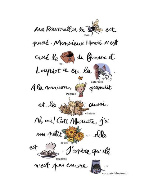 Voilà 10 ans que Manu Larssinet, Mariette et tout le petit monde du Retour à la terre n'avaient pas donné signe de vie... Mariette attend un deuxième enfant. Madame Mortemont a appris à utiliser un Samsong ® et envoie des emojis énigmatiques. Manu, lui, part à la recherche de son père sur Internet et décide d'arrêter la bande dessinée. Quant à Philippe, l'éditeur-adjoint, il se lance dans un voyage téméraire en direction des Ravenelles... Un 6e tome qui réserve bien des surprises !