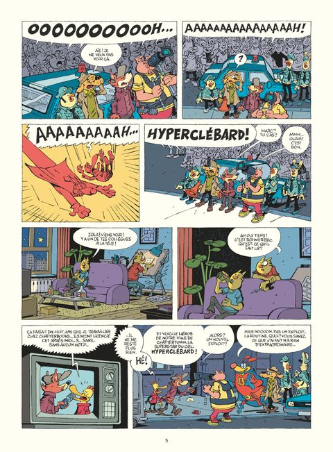 La vie, c'est pas comme dans les bandes dessinéesZola est auteur de BD. Enfin, disons qu'il aimerait bien... Mais les projets qu'il soumet aux toutes puissantes éditions Chatterbooks, unique maison d'édition de Chattertown où il travaille comme manutentionnaire, sont systématiquement refusés. Pour tout dire, ici on est plus enclin à faire prospérer leur poule aux oeufs d'or, les aventures d'Hyperclébard le super-héros, qu'à accepter les oeuvres intimistes de jeunes auteurs en herbe. Mais un jour, alors qu'il travaille dans le jardin de sa mère, Zola sauve un bourdon de la noyade. Il n'imaginait pas que ce geste anodin allait peut-être changer sa vie à tout jamais. Métamorphosé en super-héros, Zola le « Roi des bourdons » va alors devenir le rival dans la vraie vie d'Hyperclébard...Le Roi des bourdons est autant une aventure loufoque qu'un récit de super-héros décalé et une critique en creux du milieu de l'édition de bande dessinée. De son dessin animalier et son sens du dialogue percutant, l'auteur de La Proie parvient à brosser quantité de sujets fondamentaux avec une légèreté coutumière. Deshumanisation de la société, désillusions professionnelles, acceptation du deuil ou conformisme sociétal sont ainsi passés au crible avec une sensible touche d'humour et une bonne dose de tendresse. S'il avait d'abord publié Le Roi des bourdons en 6 petits volumes autoédités, David de Thuin a décidé, pour cet ouvrage exceptionnel, de réécrire et redessiner intégralement cette histoire en un seul volume.