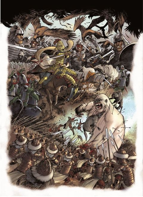 La bataille fait rage depuis la mort de lancien Empereur... Les armées deTengiz semblent contenir les assauts furieux des Ilkhans de la steppe. Soudain, une flèche empoisonnée dun archer Ilkhan blesse leur roi. Le trépas du souverain est proche et pourtant il demande à son scribe de venir pour quil fixe à tout jamais son histoire. De la mort de son père, lillustre Kamachak le faucon, à son couronnement dans la salle des Sages, il raconte les événements tels quil les a vécus. Turghul, le seigneur des steppes, pour légitimer son pouvoir, et croyant à une prophétie qui annonçait quil serait Empereur pour cent et un jours, déclare la guerre à Tengiz. Il refuse de prêter serment aux mages : la guerre devient inévitable. Les chamans qui lentourent le poussent à agir de la sorte car ils veulent éliminer les mages officiels et les remplacer.