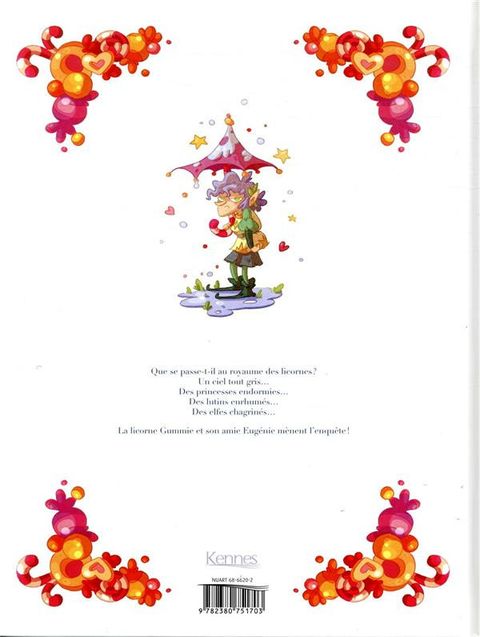 CATASTROPHE ! Depuis des jours, la pluie s'abat sur le royaume des licornes. Toutes les créatures sont tristes ou de mauvaise humeur ! Sauf Gummie, la pétillante licorne, et son amie, la princesse Eugénie. Ensemble, elles partent en mission pour redonner le sourire à Fildor, l'elfe responsable de la météo. Réussiront-elles à faire réapparaître le soleil ?