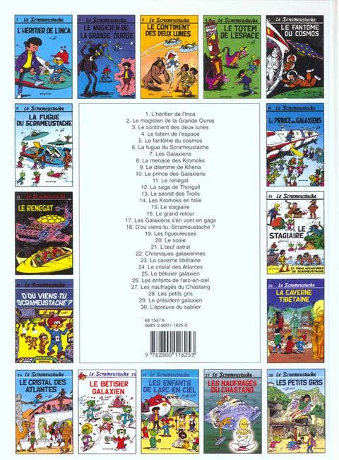 Un nouvel envol pour l'extraterrestre le plus célèbre de la BD !Il se dit que l'espace est un lieu où le temps ne se déroule pas de la même manière que sur Terre... Voilà peut-être pourquoi le Scrameustache, créé en 1972 par Gos, n'a pas pris une ride ! Car depuis maintenant plus de trente ans, les enfants, génération après génération, continuent de plébisciter les aventures de ce drôle d'extraterrestre débarqué dans le petit village de Chambon-les-Roses, où il a fait vivre d'incroyables aventures au jeune Khéna et à son incorrigible râleur de tonton Georges. Il n'était donc que justice de rendre à cette grande série de SF pour tous l'hommage qu'elle méritait. Ce qui sera chose faite dès juin 2008, avec la sortie des 34 premiers tomes de la saga présentés sous une nouvelle maquette... en attendant de nouvelles aventures !
