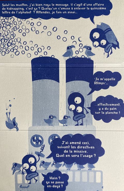 Le détective le plus oubapien du monde se met sur les traces du voleur de la lettre O. Une façade toute en gravure sur bois, fidèle au style qui fait le charme des aventures de Détective Rollmops. Elle est par ailleurs un quasi-lipogramme puisque jusqu'à la résolution de l'enquête, la 15e lettre de l'alphabet manque.