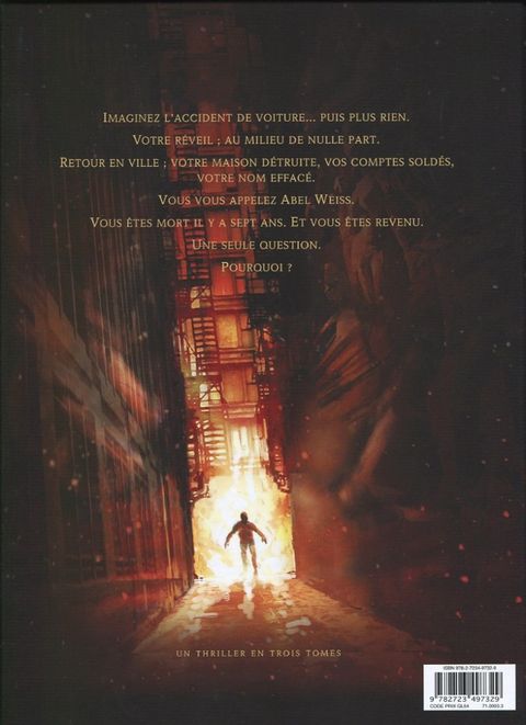 1983. Abel Weiss est victime d'un grave accident et tombe dans le coma. Il se réveille à des kilomètres du lieu de l'événement. De retour dans sa ville, il découvre que son absence n'a pas duré quelques heures, mais. sept ans. Il est désormais considéré comme mort par toutes les administrations et toute trace de lui, de sa maison, qui a été remplacée par un building, à son compte en banque littéralement volatilisé, a été soigneusement effacée.Comment Abel Weiss a-t-il pu « ressusciter » ? Qui a mené cet étrange complot contre lui ? Pourquoi a-t-on cherché à faire disparaître toute trace de son passé ? Qui a assassiné la seule personne capable de l'identifier ? Recherché par la police, dénué d'identité et de moyens, Abel devra trouver, seul, les réponses aux questions qui le hantent, même si celles-ci ne sont pas de ce monde... Plus de cinq ans après, découvrez enfin la conclusion du Syndrome d'Abel grâce à la sortie simultanée des tomes 2 et 3 !