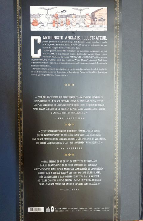 Cartooniste anglais, illustrateur, peintre symboliste et sculpteur, rescapé de la Première Guerre mondiale et proche de Carl JUNG, Herbert Edmund CROWLEY est de ces visionnaires au trait unique et à l'origine d'une nouvelle forme d'art. Avant-gardiste inclassable multipliant les expositions au légendaire Armory Show, où se produisent PICASSO, VAN GOGH ou encore Léon BAKST, CROWLEY s'affiche comme un génie oublié, trop longtemps laissé dans l'ombre de Windsor McCAY, créateur de Little Nemo in Slumberland et aux origines de la bande dessinée moderne. Revenant sur la vie et l'oeuvre de cet artiste à la carrière singulière, ce beau-livre donne toute la dimension de l'un de ces légendaires illustrateurs américains jusqu'ici ignorés par l'histoire du neuvième art.